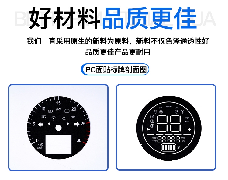 電動車面板數字顯示面貼電動汽車顯示屏面板貼 PC絲印