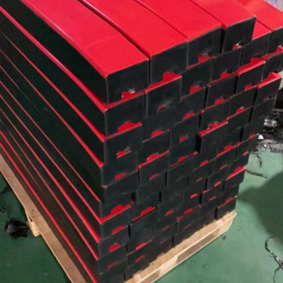 國內生產廠家選擇與輸送帶直接接觸的材料,主要采用三種方式分子量聚乙烯板,聚氨酯、陶瓷。緩沖條在收到沖擊時,主要通過彈性物質通過自身的物理彈性起到很好緩沖作用, 因此橡膠 彈性必須的滿足一定的條件,國際上緩沖條用橡膠彈性為邵氏硬 55 度左右橡膠,(如果井下使用橡膠必須是經過處理的阻燃橡膠) ,并具備一定的抗撕裂力,抗拉 強度,斷裂伸長率,
