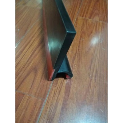 防溢裙板解析聚氨酯防裙板|皮帶機裙板|導料槽裙邊價格|皮帶擋板廠家防溢裙板的安裝解析,多護防溢系統,Y型固定膠塊,裙邊主體采用一體熱硫化方式制成,結構緊湊有效,結實。 T型固定膠塊可根據客戶要求在制作的過程中去掉,以適應過去老的安裝方法。 1.采用多護三道密封條進行密封,比普通單塊橡膠的防溢裙邊效能提高比雙道密封的防溢裙邊多一個密封空間, 2.采用天然橡膠添加半凝固潤滑劑的方式,解決了以往防溢裙邊的同時,容易損傷皮帶的難題。該材質質地柔韌,彈性優良,避免了聚氨酯(PU)不耐水的缺點,同時不損傷輸送帶。    3.防溢裙邊的主體部分為黑色,采用天然橡膠和丁苯橡膠混煉而成,在保持挺括的基礎上增加彈性,使紅色的多護密封條緊密的貼服在輸送帶上,甚至當多護系統達到使用壽命后能夠繼續履行防溢裙邊的職責,降低使用客戶的的經濟效益。   4.多護防溢橡膠裙邊的安裝方式特別方便,只需確認安裝位置后,將專用固定槽采用焊接,鉚接,自攻螺絲等任一方式固定在落料槽外邊,再將多護防溢裙邊背面的T型膠塊滑入固定槽即可。    5.多護防溢系統,Y型固定膠塊,裙邊主體采用一次性一體熱硫化方式制成,結構緊湊有效,結實。背面的T型固定膠塊可根據客戶要求在制作的過程中去掉,以適應過去老的安裝方法。聚氨酯防溢裙板的配件防溢裙板與夾持器配套使用,一米夾持器含兩個夾持器和一米角鋁。用產品回饋客戶,客戶滿意是我們不懈的追求!如需特殊規格,請出示圖紙,可根據客戶要求定做各種規格的聚氨酯防溢裙板