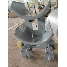 TB-GZG型滑車由牽收引滑車、電纜滑車、末端滑車三部分組成,牽引滑車跟隨移動機械導纜(牽引)裝置,每個移動機械配1個,隨移動機械往返運行。中間電纜滑車將電纜懸掛在工字鋼軌道范圍內隨牽引滑車移動,兩端并裝有緩沖裝置,滑車視移動長度不同而定數量。終端滑車固定在工字鋼導軌末端,一般每個移動機械設置1個。
