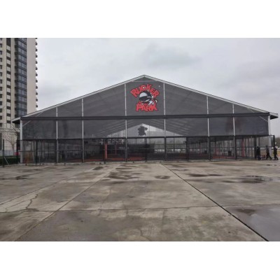 篷房體育場館采用德國模塊化結構,是一種臨時性建筑。篷房體育館以3米或5米一個單元拼接安裝組成,長度可無限延伸,快速搭建大面積空間。 篷房體育場館的跨度雖然不像長度一樣可無限延伸,但隨著篷房技術的提升,同樣有較大的跨度規格可供選擇,目前篷房行業中體育館篷房常規可提供的跨度是3-60米,而這跨度就是指篷房體育館內的凈跨空間,內部是沒有任何立柱,空間利用率可達到充分利用,滿足各種體育運動活動需求。