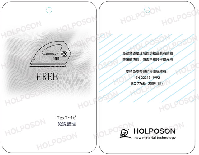 HOLPOSON? Ironing Free 樹脂是纖維素纖維及其混紡織物洗可穿免燙整理的無(wú)甲醛整理劑,主要應(yīng)用于以襯衫、職業(yè)裝、帽子為主的服裝面料的防皺整理,賦予面料良好的防皺免燙性能,穿著時(shí)不受拘束,不易起皺,手感柔軟。