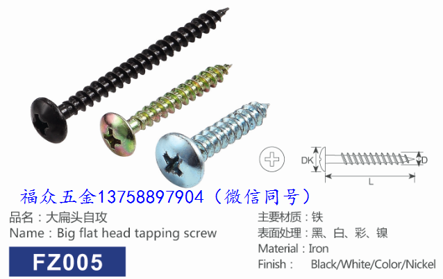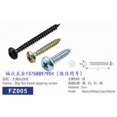 更新信息 快采購網供應商鷹潭福眾五金制品(集團)股份有限公司供應大扁頭自攻螺絲釘,為您提供詳細的產品報價、參數、圖片等商品信息,本產品于2023-06-28 21:31更新,主要更新內容為:產品類別、產品參數、產品價格、產品圖片等信息。如需進一步了解大扁頭自攻螺絲釘詳細信息,請與廠家直接聯系,并說明是在快采購網看到這條商機的。