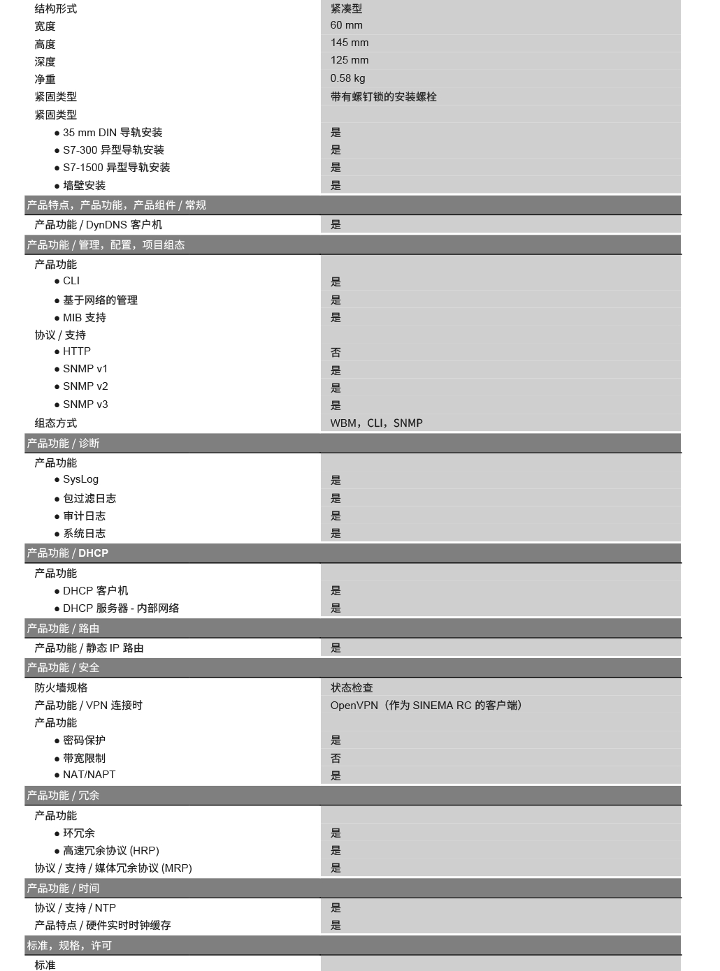 SCALANCE SC636-2C 工業安全設備; 用于保護 設備和網絡 在分散式生產 和過程工業中 用于備份 工業通信 防火墻提供保護; 其他功能: 地址轉換(NAT/NAPT); 連接至 SINEMA RC; 4 個端口,電氣,10/100/1000 Mbit/s RJ45 和 2 個組合端口 電氣或光學; 10/100/1000 Mbit/s RJ45 或 100 Mbit/s SFP 或 1000 Mbit/s SFP