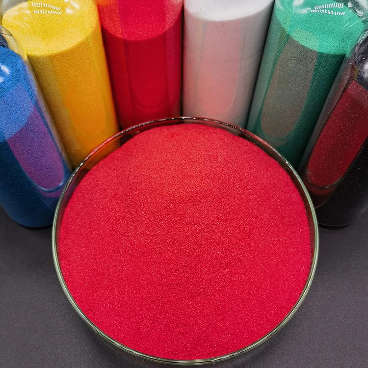 輕質彩砂不同顏色混合可合成另一種色彩,如紅和黃混合可合成橙色,藍和紅可合成紫色根據三原色進行調色,混合后內有不同色彩顆粒,制成藝術涂料或美縫劑可增加表面美觀度。