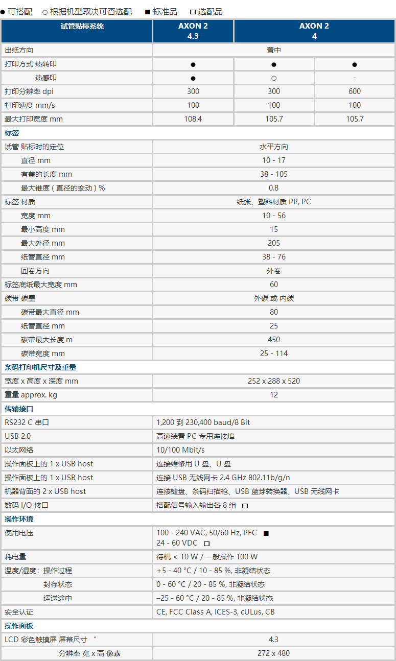 AXON 2 的用途為在自粘性標簽上打印二維或一維條碼并在試管上進行貼標作業。