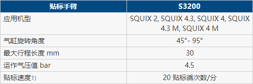 使用壽命、預(yù)先剝離功能、氣壓計(jì)、穩(wěn)定度和支撐氣流等說(shuō)明請(qǐng)參照貼標(biāo)手臂 S1000。